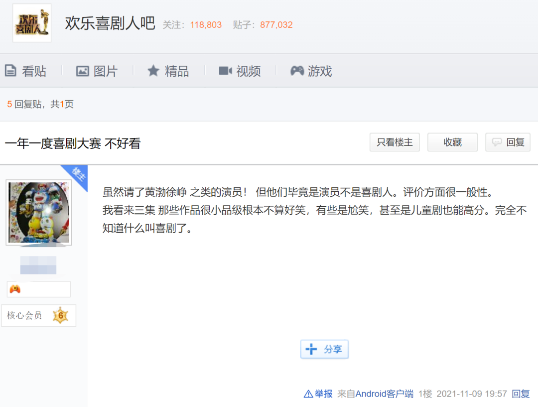 《一年一度喜剧大赛》总是在有意无意地和“小品”割席,这是我在观看完几期节目后,在网上试着搜搜相关作品评价时得到了最大感受。