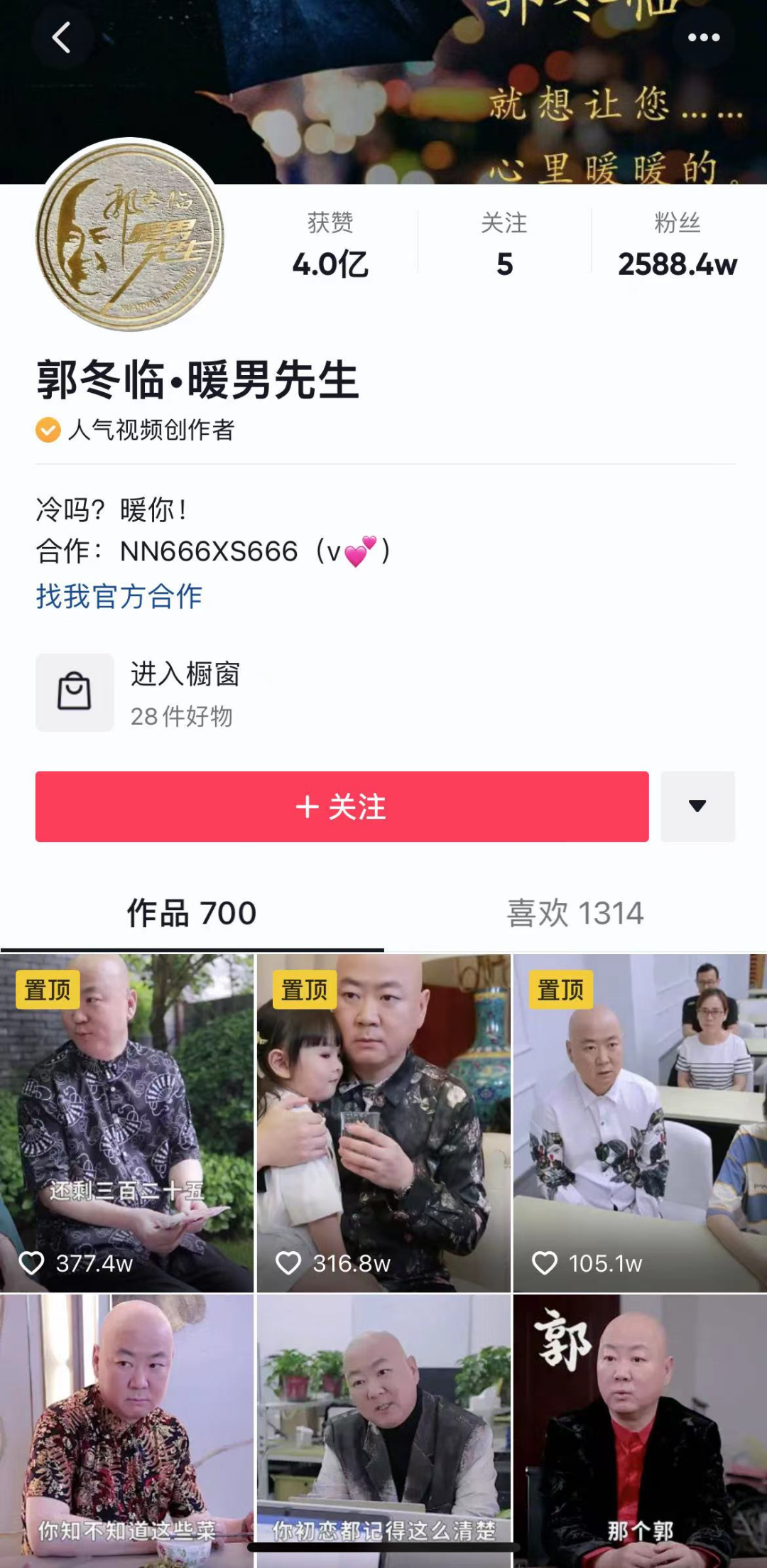 说到短视频,似乎成了小品演员的新出路。郭冬临的“暖男先生”在抖音上已经有了两千多万粉丝,长相声音都像一个模子里刻出来的陈佩斯父子、陷入卖酒风波的潘子、留言板里总出现“想死你了”的冯巩,都成了令新晋网红羡慕的流量收割机,短视频平台们也非常愿意倾斜流量。
